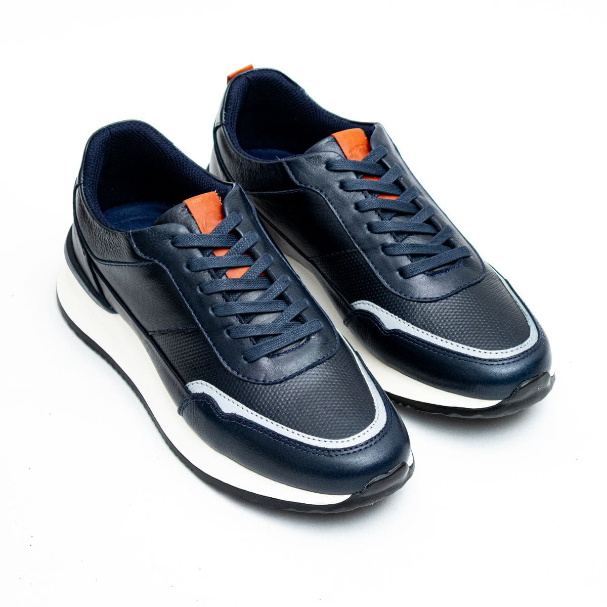 - Capellada en cuero liso color azul con detalles grabados